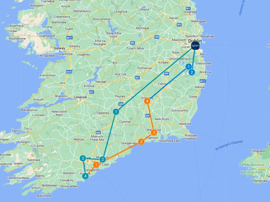 Efter frukost börjar ni dagen med att besöka hamnen i Cobh. Härifrån seglade skeppen som tog de svältande irländarna till en bättre tillvaro under 1800- och 1900-talet. Ni fortsätter österut utefter det som kallas ”Copper Coast”, en UNESCO-märkt geopark, med lunchstopp i någon av de små kuststäderna. Detta innan ni anländer till Irlands äldsta stad Waterford, grundad av vikingar på 800-talet. Här kan ni besöka den berömda kristallfabriken eller någon av de fina museerna innan dagen avslutas i den pulserande staden Kilkenny med sitt slott och mängder av pubar och restauranger. Ni övernattar i Kilkenny, som har blivit framröstat som Irlands vänligaste stad.